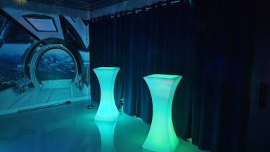 The Space Room is a sleek and modern studio located in Houston, perfect for productions, brand shoots, content creators, and immersive events. Featuring dynamic RGB lighting, projection options, and a clean futuristic aesthetic, this room can shift from polished professional to high energy creative with ease. Built for flexibility and full of visual character, the Space Room is an excellent choice for video shoots, editorials, tech inspired activations, and forward thinking event concepts.